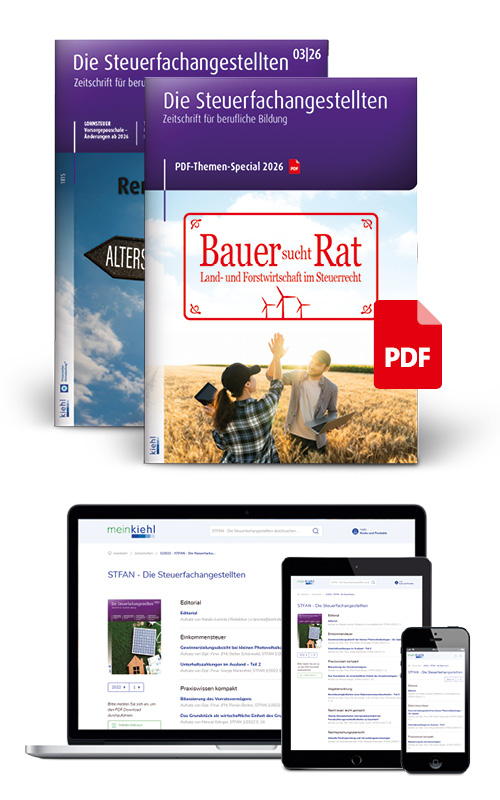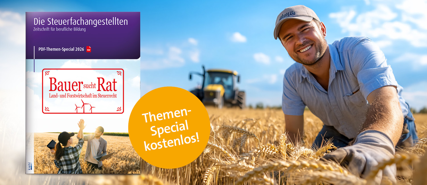 Landwirte sind heute vielseitige Unternehmer: Sie produzieren nicht nur, sondern verarbeiten und vermarkten ihre Erzeugnisse, betreiben Photovoltaik- und Biogasanlagen, engagieren sich als Mit­unter­nehmer oder vermieten Ferien­wohnungen. Entsprechend komplex sind steuer­liche Fragen. Trotz der großen praktischen Bedeutung mit rund 255.000 Betrieben in Deutschland wird das spezielle Steuer­recht für Land- und Forstwirte in der Aus­bildung oft nur am Rande behandelt. Dieses Themen-Special gibt Ihnen einen kompakten, praxis­nahen Über­blick über die wichtigsten Steuer­arten und zeigt Ihnen, welche zahl­reichen Sonder­vorschriften zu be­achten sind. Damit sind Sie bestens auf Fragen von Land- und Forstwirten vor­bereitet.