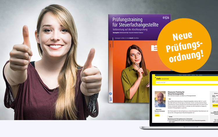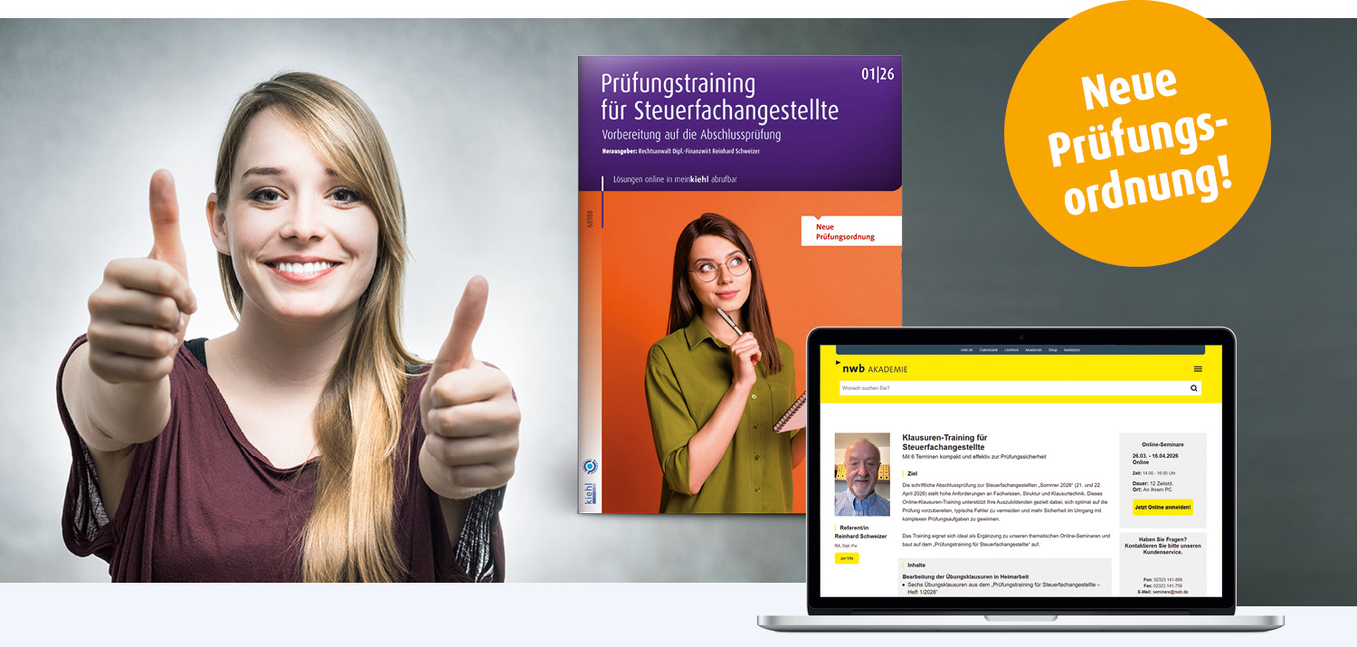 Kiehl bietet exklusiv die ersten Übungsklausuren nach neuer Prüfungsordnung – passend dazu vertiefende Online-Seminare der NWB Akademie!